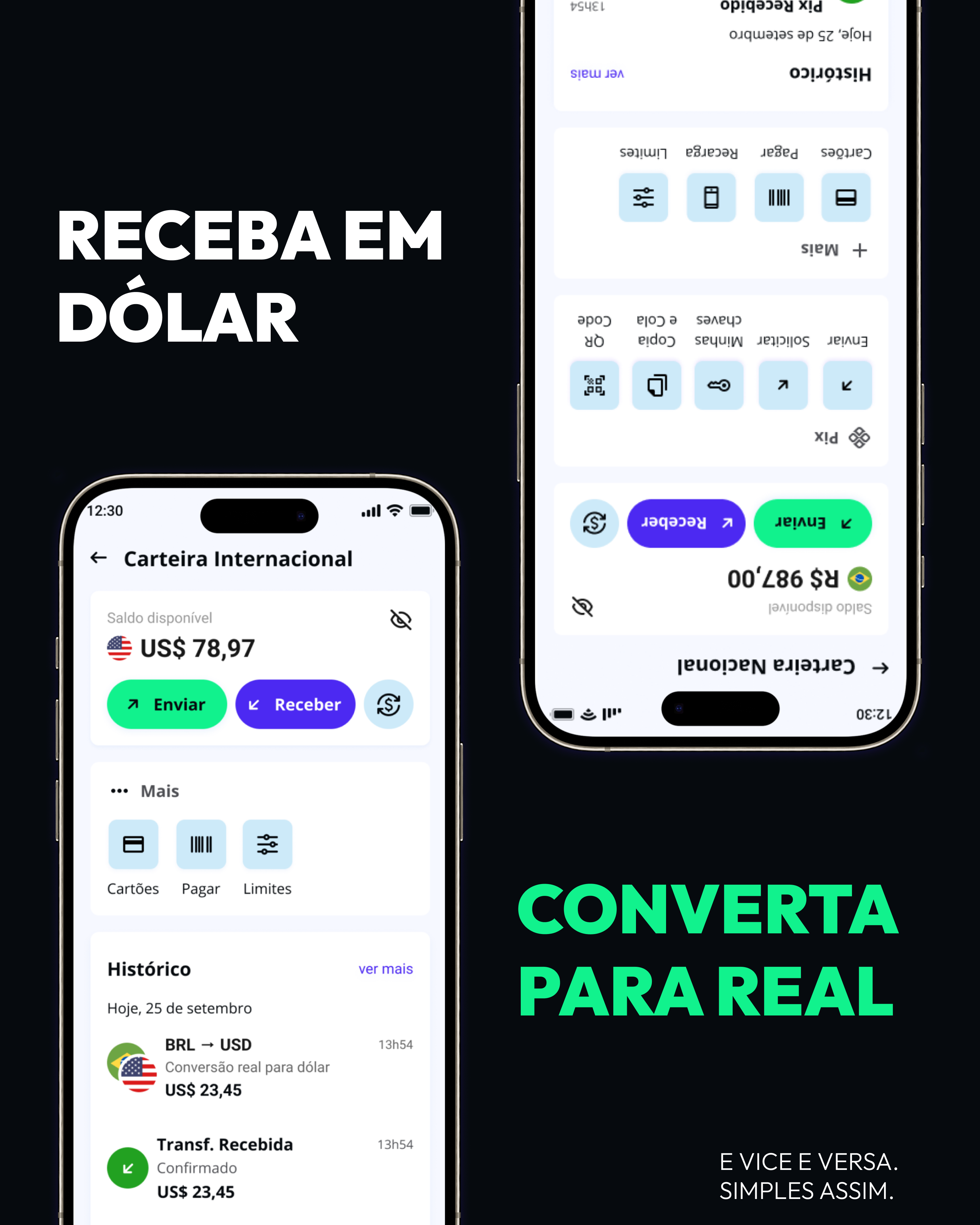 Envie. Receba. Converta. Troque mensagens. Livre-se das taxas e câmbio abusivos nas viagens.